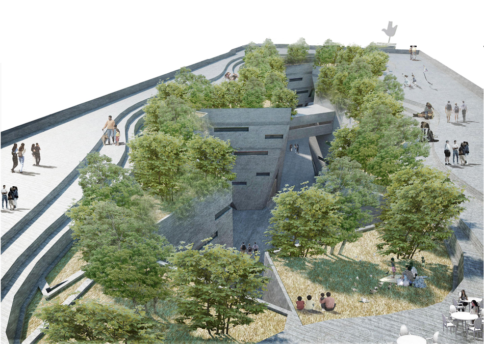 Design reconstruct the domino system which originated in Le Corbusier theory , replace column grid with a tube space as a support system, and form a quiet place surrounded by tube space . It form the open exchange channel with the environment around by the cutting of the first floor space. Interior space constitute a loop-through flow line via the module space split, and connecting vertical transportation. Central surrounded space is the spirit of knowledge museum place, providing people with a diversity of exchange activities, leisure and so on. In the vertical direction, design shading by overhanging veranda outside, which connected by vertical ramp, eventually leading to the roof. The roof that form by the sunken forest plaza , provide people with knowledge exchange and sharing of outdoor venues.
