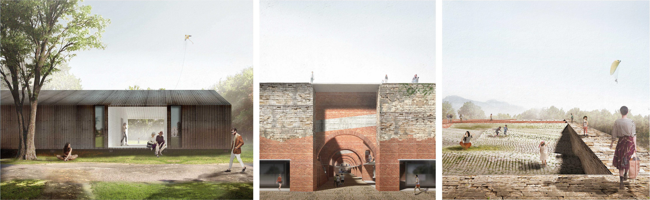 The ideal garden is a place for free wandering, as well as space for both order and memorial. The design extends the base scale, and opens the roof to form a cross intersection shared arcades along two axis direction in the ground , which we call it as the reconstruction of basilica space. The arcades divides the plan into four independent and connected areas, and establishes the connection between the building and the perimeter of the site. The original interface was reconstructed, and the original wall materials were recycled, which were used to create a new interface with the new bricks. Different materials are inscribed with different times, which are manifested the memory of the space in the field.