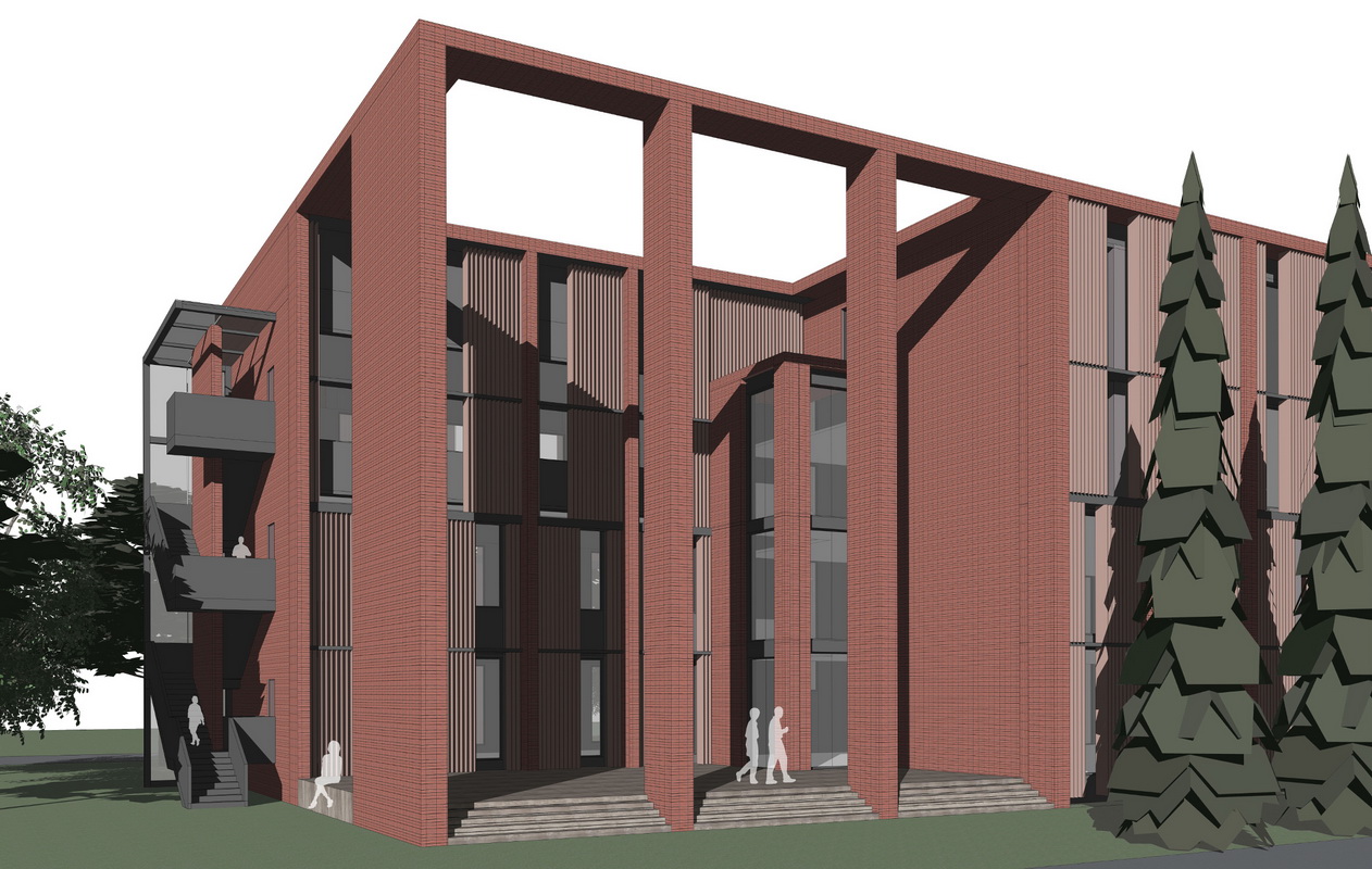 One of the development trends of future education is diversified teaching methods. The original building is a conventional classroom model evenly distributed along the inner corridor, and there is a relative lack of open space. The facade reconstruction design adjusts and optimizes the space on the first floor, adjusts the position of the main entrance, locally changes the original exterior wall window into a door opening, and adds an exhibition gallery outside it to provide a place for communication and display activities. The southwest corner and southeast corner enclose the turning point of the original building volume with a colonnade to form two courtyards to enhance communication and blur the internal and external boundaries. The East colonnade is the horizontal extension of the exhibition gallery, and the courtyard is equipped with green plants to create a more comfortable and pleasant communication and rest space.